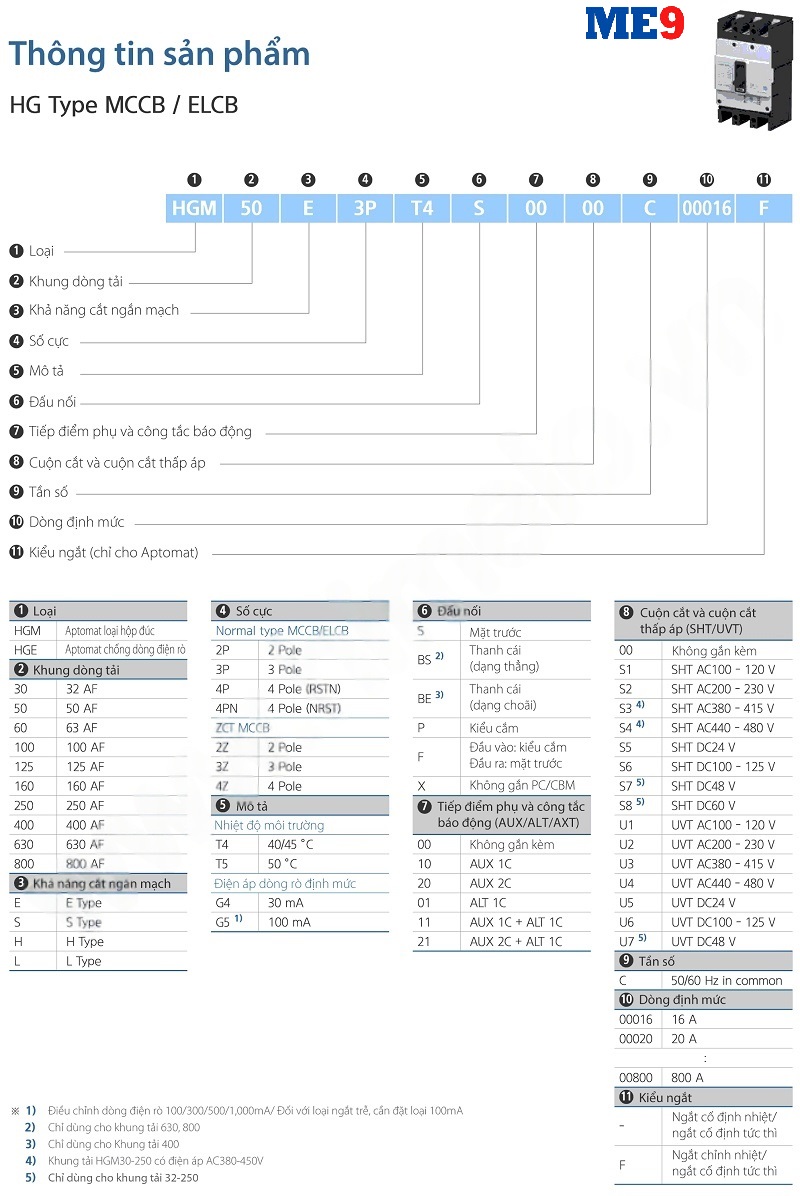 Aptomat Hyundai MCCB HG-SERIES có loại át 2 cực (2P), 3 cực (3P) hoặc 4 cực (4P). Nó được dùng trong các tủ điện hạ thế từ tủ lộ tổng đến tủ phân phối và tủ chiếu sáng,...