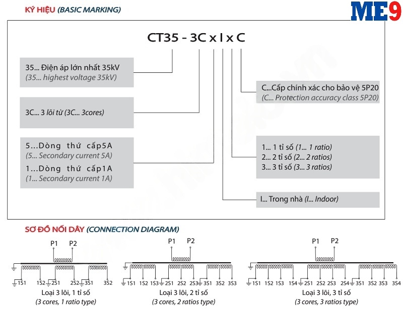 Biến dòng 35kV trong nhà 3 cuộn thứ cấp Emic hay gọi đầy đủ là máy biến dòng đo lường trung thế 35kV 1 pha trong nhà kiểu đúc epoxy - là thiết bị dùng để biến đổi dòng điện từ cao xuống thấp tại 2 mức dòng 1A hoặc 5A tiêu chuẩn ở lưới điện trung thế đến 35kV. Dòng 1A hoặc 5A phía đầu ra thứ cấp của biến dòng sẽ đùng dùng đưa tới các đồng hồ hoặc công tơ để đo đếm hiển thị các thông số theo yêu cầu.