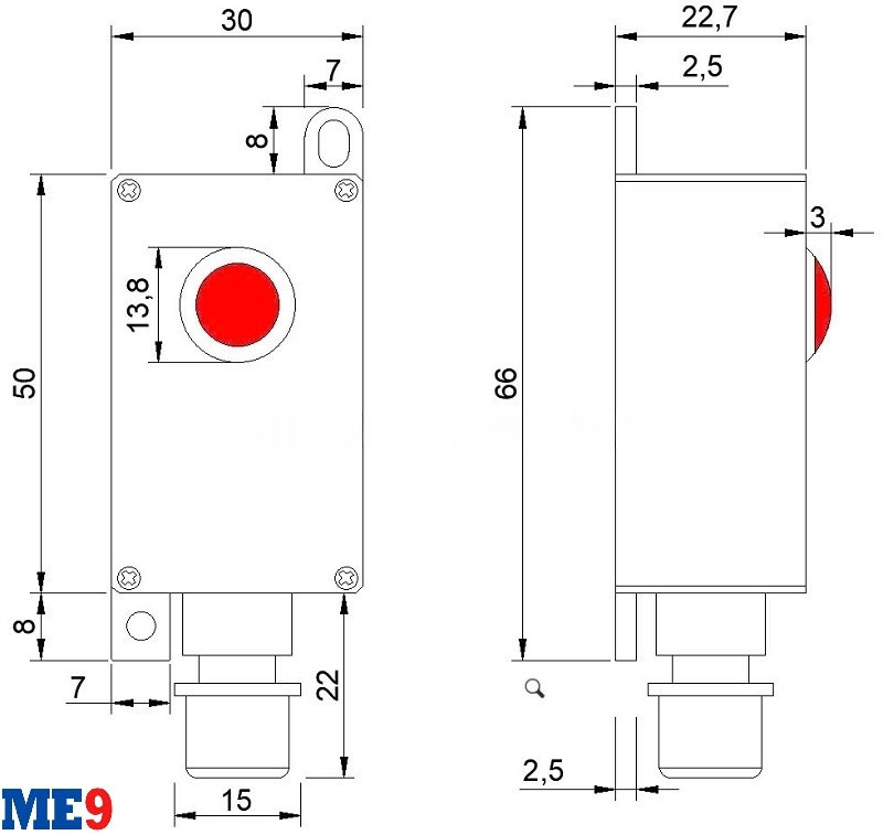 Bản vẽ kích thước đèn báo ngoài lắp kết hợp cùng Bộ báo sự cố đầu cáp EKL4 Andaxing