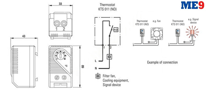 Bộ ổn nhiệt NO mã KTS-011 hay còn gọi là bộ điều nhiệt (Thermostat) - là một thiết bị cảm biến và điều khiển đóng mở tiếp điểm để từ đó điều khiển đóng cắt mạch quạt thông / hút gió hay cấp tín hiệu đi cảnh báo.