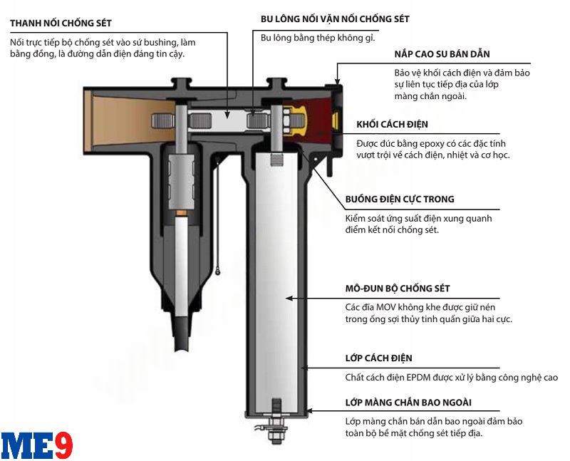 - Bộ chống sét được thiết kế cho mục đích bảo vệ thiết bị, bao gồm máy biến áp, máy cắt và các thiết bị khác không bị quá áp do sét hoặc do quá trình đóng ngắt thiết bị.