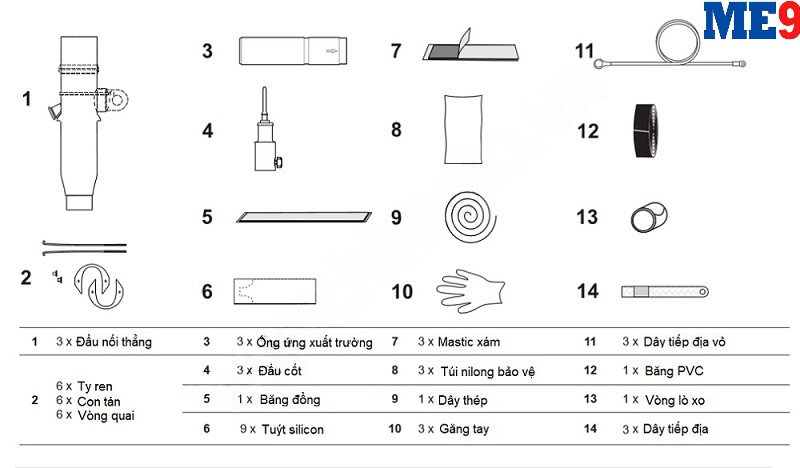 - Đầu cáp nối thẳng (Straight) Raychem 24kV 250A RSSS 52XX là đầu cáp dùng để đấu nối cáp ngầm 24kV vào tủ trung thế RMU như tủ RMU ABB, tủ RMU Schneider, tủ RMU Siemens, tủ RMU SFA... điện áp đến 24kV.
