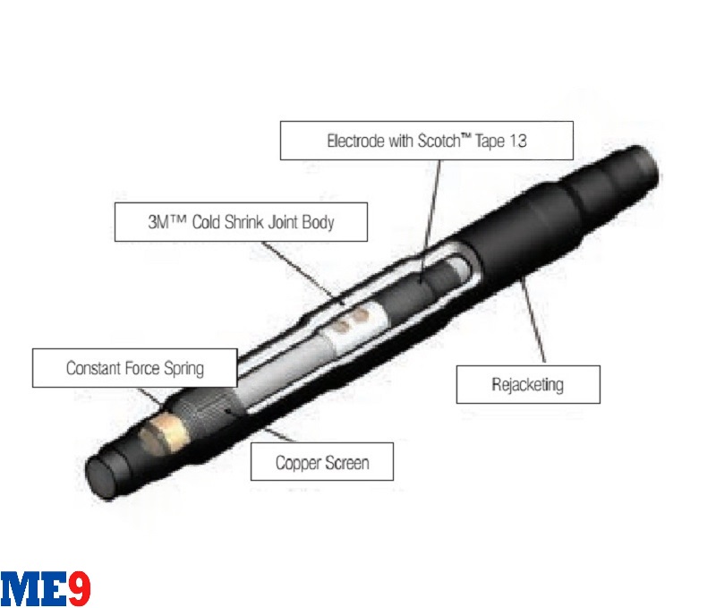 - Hộp nối cáp co nguội vỏ co nhiệt 24kV hãng 3M mã QS-2000E là loại vật tư dùng để nối 2 đoạn cáp trung thế cấp điện áp đến 24kV lại với nhau.