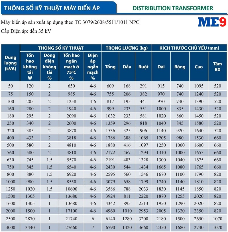Máy biến áp 3 pha kiểu hở Mahatachi 35kV là máy biến áp phân phối hãng Mahatachi (thương hiệu Việt Nam với công nghệ từ Nhật Bản) loại có sử dụng bình dầu phụ, dải điện áp sơ cấp đầu vào 35kV hoặc 2 nấc điện áp 35(22)kV và thứ cấp đầu ra 0.4kV 3 pha.