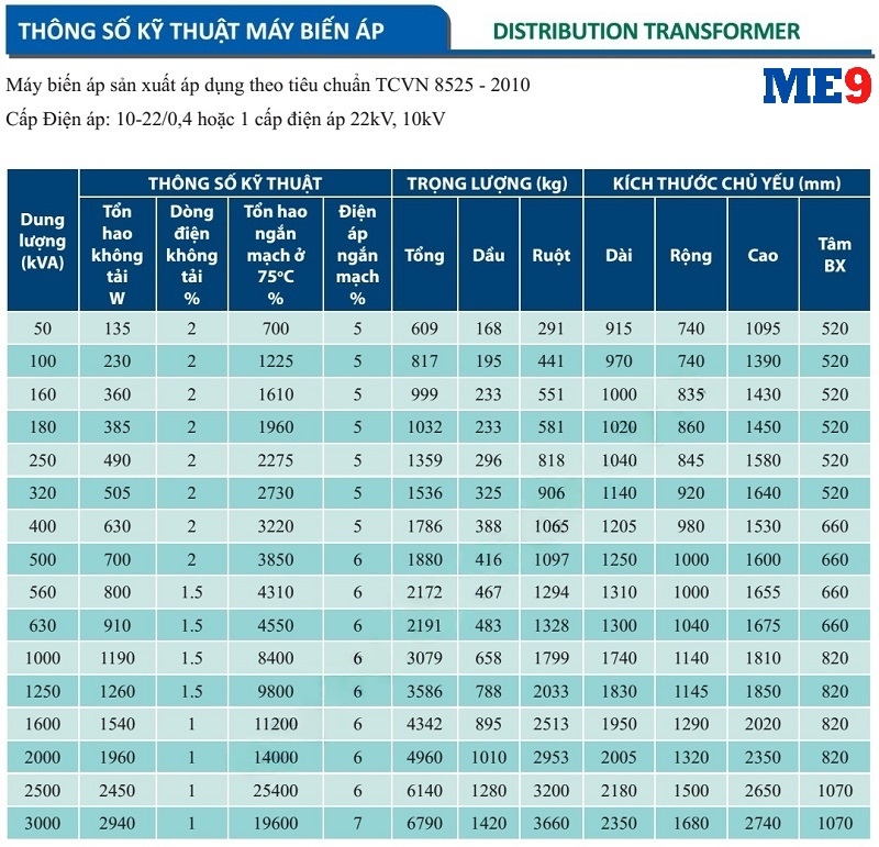 Máy biến áp 3 pha kiểu kín Mahatachi 22kV là máy biến áp phân phối hãng Mahatachi (thương hiệu Việt Nam với công nghệ từ Nhật Bản) loại không sử dụng bình dầu phụ, dải điện áp sơ cấp đầu vào 22kV hoặc 2 nấc điện áp 22(10)kV và thứ cấp đầu ra 0.4kV 3 pha.