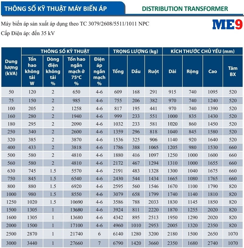 Máy biến áp 3 pha kiểu kín Mahatachi 35kV là máy biến áp phân phối hãng Mahatachi (thương hiệu Việt Nam với công nghệ từ Nhật Bản) loại không sử dụng bình dầu phụ, dải điện áp sơ cấp đầu vào 35kV hoặc 2 nấc điện áp 35(22)kV và thứ cấp đầu ra 0.4kV 3 pha.