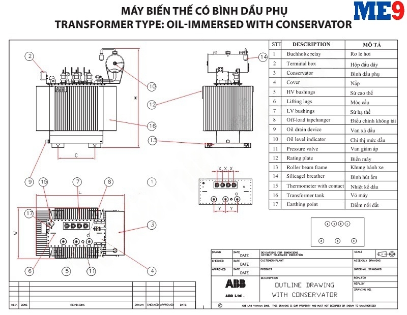Máy biến áp dầu ABB là loại máy biến áp mà ở đó các cuộn dây trung thế và các cuộn dây hạ thế đều được cách điện với nhau bằng dầu cách điện. Máy biến áp này hay được gọi là máy biến áp ngâm dầu. Trong đó máy biến áp dầu có bình dầu phụ ABB 22kV là một loại máy biến áp ngâm dầu của hãng ABB dùng cho lưới điện 22kV, được sản xuất theo tiêu chuẩn cấp cách điện 24kV và là loại có bình dầu phụ tạo không gian an toàn trong quá trình giãn nở của dầu theo nhiệt độ môi trường.