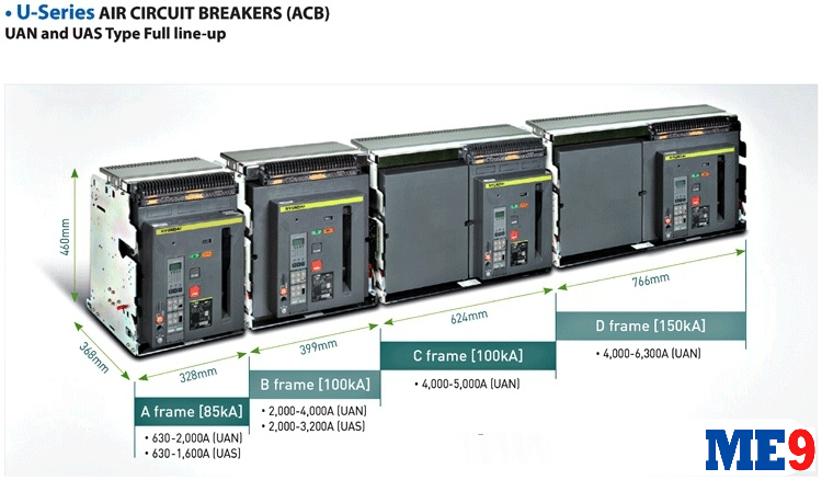 Máy cắt Hyundai ACB U-SERIES thường được dùng trong các tủ điện hạ thế tổng hoặc các tủ điện hạ thế nhánh với các nhánh có công suất lớn.