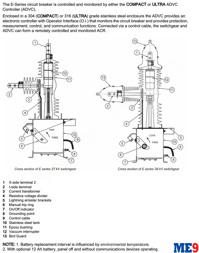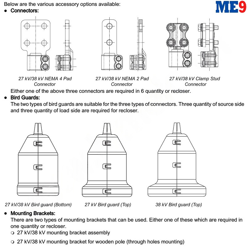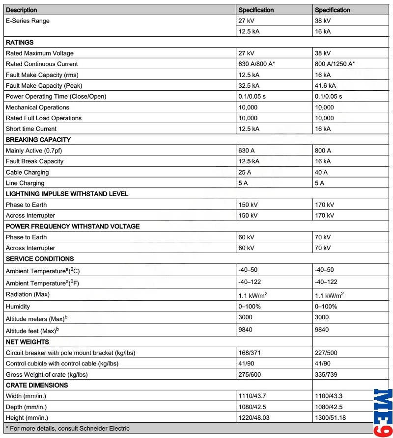 Máy cắt tự đóng lại Auto-Recloser Schneider E27 là 1 loại máy cắt có khả năng tự đóng lặp lại nhờ cài đặt chương trình bảo vệ từ tủ điều khiển bảo vệ đi kèm máy cắt. Máy cắt tự đóng lại Auto-Relcoser Schneider Nulec E27 được thiết kế để đáp ứng các yêu cầu sử dụng bảo vệ phụ tải và đường dây trên không với cấp điện áp lên đến 27kV (22kV, 23kV, 24kV).