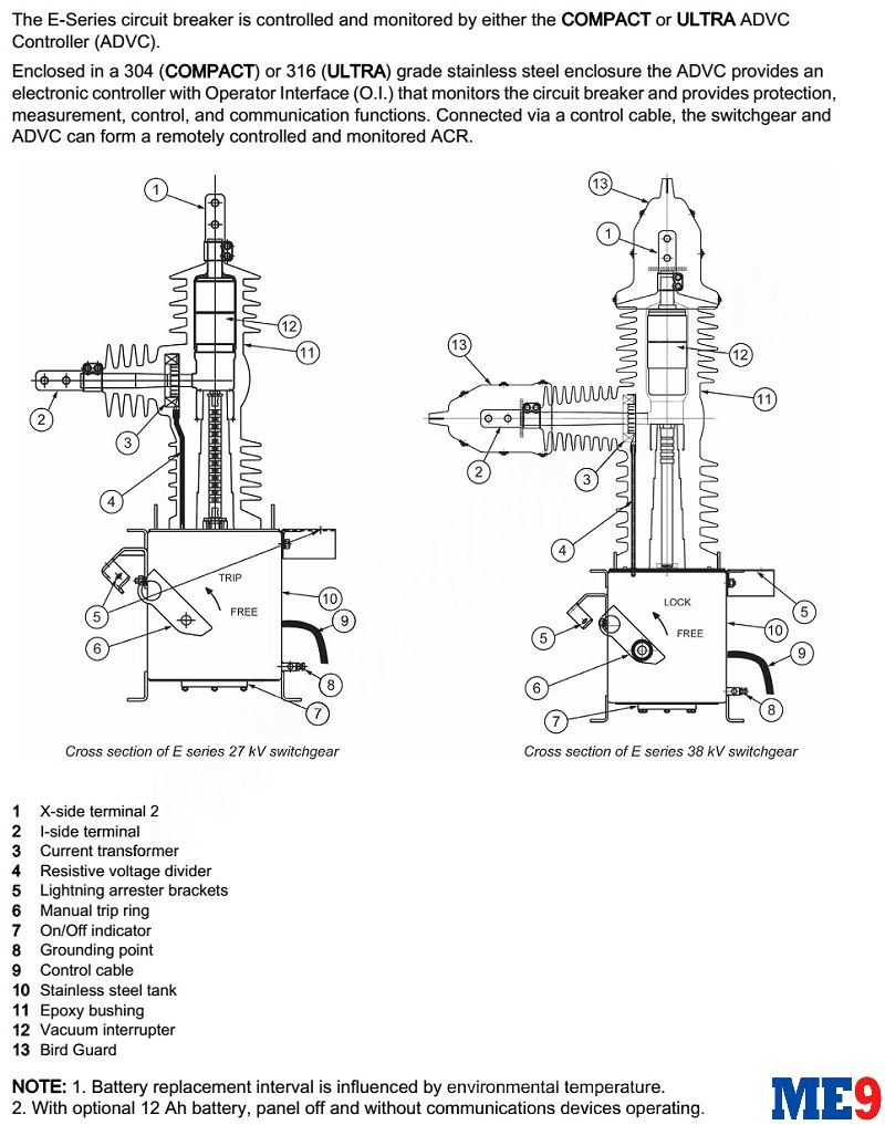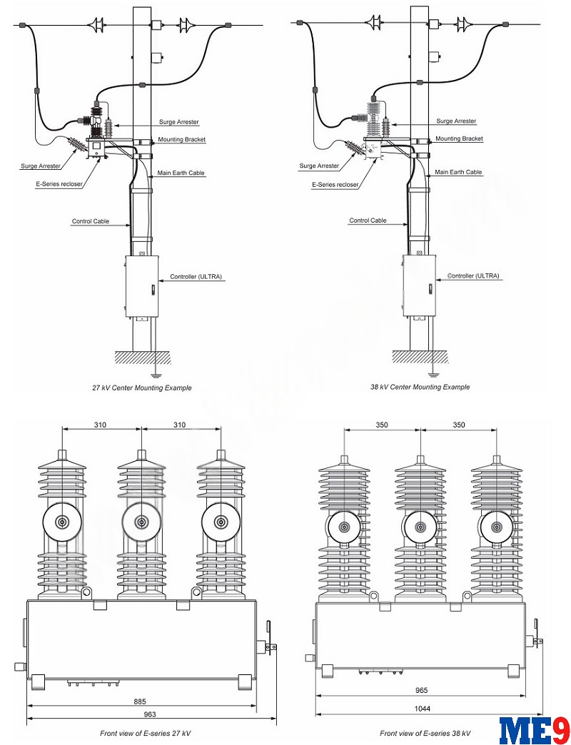 Máy cắt tự đóng lại Auto-Recloser Schneider E38 là 1 loại máy cắt có khả năng tự đóng lặp lại nhờ cài đặt chương trình bảo vệ từ tủ điều khiển bảo vệ đi kèm máy cắt. Máy cắt tự đóng lại Auto-Relcoser Schneider Nulec E38 được thiết kế để đáp ứng các yêu cầu sử dụng bảo vệ phụ tải và đường dây trên không với cấp điện áp lên đến 38kV (35kV, 36kV, 38kV).