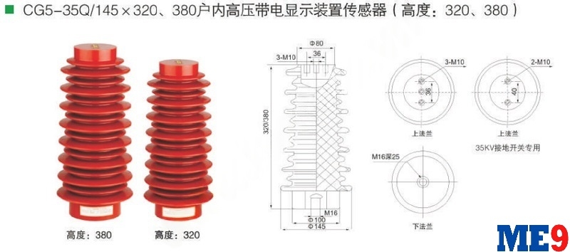 Sứ phát hiện điện áp trung thế 35kV hay sứ đỡ thanh cái trung thế kiêm phát hiện điện áp 35kV mã CG5-35Q 145x320 - là sứ được làm bằng chất liệu nhựa resin epoxy với độ bền cao, được sử dụng trong nhà trong tủ điện hoặc trên giá để đỡ thanh cái. Ngoài ra bên trong sứ có tụ phân áp/ chia áp sẽ đưa ra tín hiệu điện áp để cảnh báo cho người sử dụng biết được pha đó hiện đang có hay không có điện.