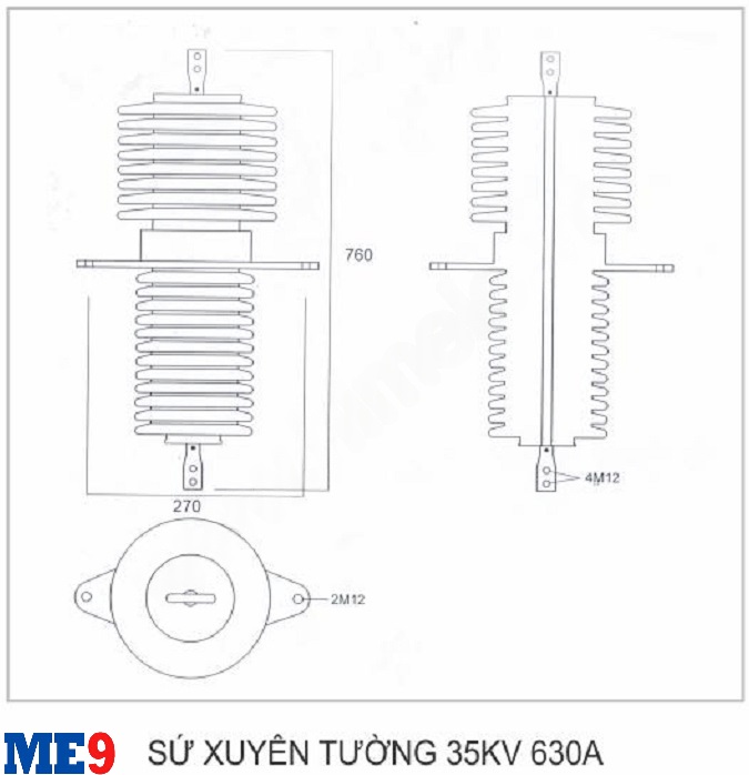 Sứ xuyên tường 35kV là thiết bị dạng sứ gốm với lõi là kim loại đồng dẫn điện, được dùng để dẫn điện trung thế đến 35kV (thông dụng là loại 6kV, 10kV, 15kV, 22kV hoặc 35kV) từ bên ngoài vào trong các trạm điện xây xuyên qua tường kín nơi được thiết kế chì vừa không gian để lắp bộ sứ xuyên tường này.